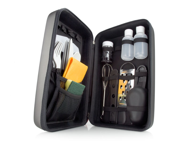Ультракомпактный набор самых необходимых кухонных принадлежностей для путешествующих гурманов.